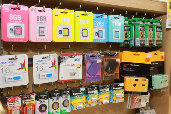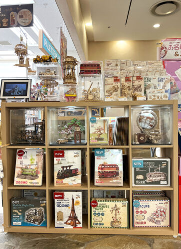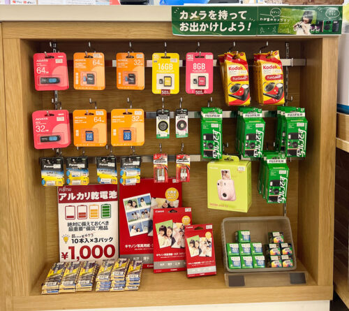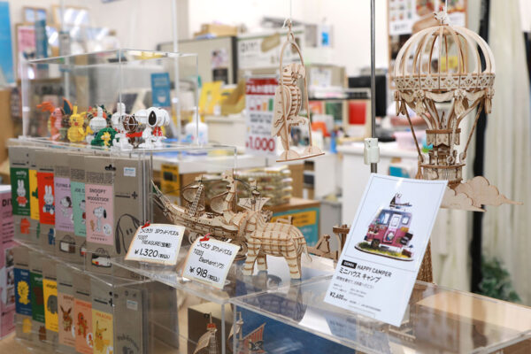 店頭では、ウッドパズルが人気の「つくるんです」シリーズ。売り切れ続出の使い捨てカメラ「写ルンです」。CMで話題の「チェキ」シリーズも販売中!