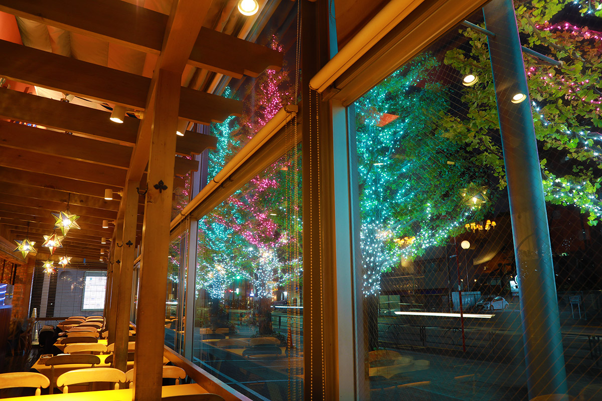 恒例のイルミネーション始まりました。今年の色を楽しみながらゆっくりとお食事やお飲み物をお楽しみください。テイクアウトもご用意があります。
