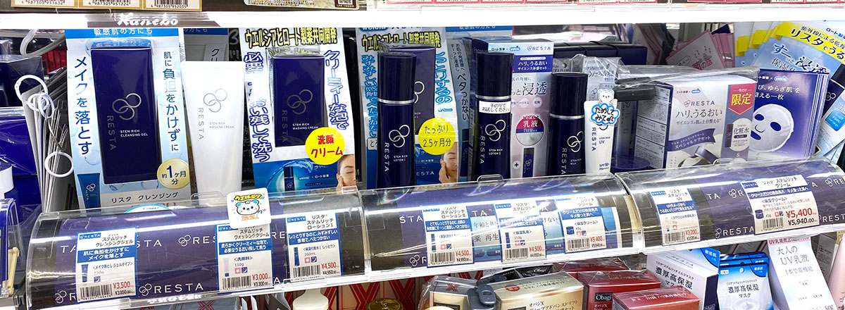 ロート製薬との共同開発ブランド「RESTA(リスタ)」コーナー。12/1発売した「リスタ ステムリッチミルクマスク」も人気です。