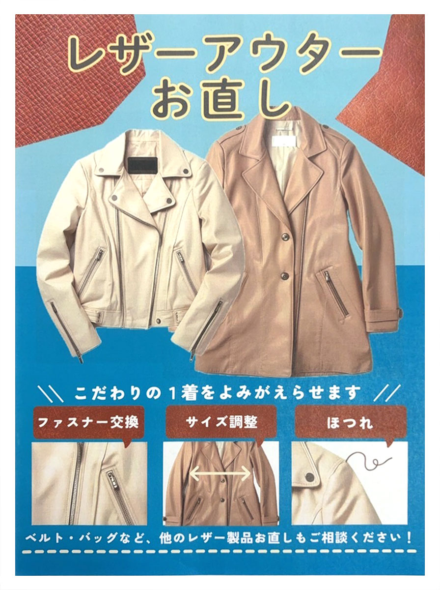 革製品のサイズ直しも可能です。革製品はジャストサイズの着用がおすすめです。