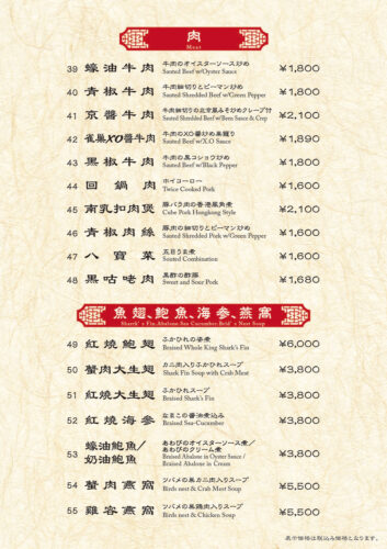 当店のメインメニューはこちらになります。参考にどうぞ。