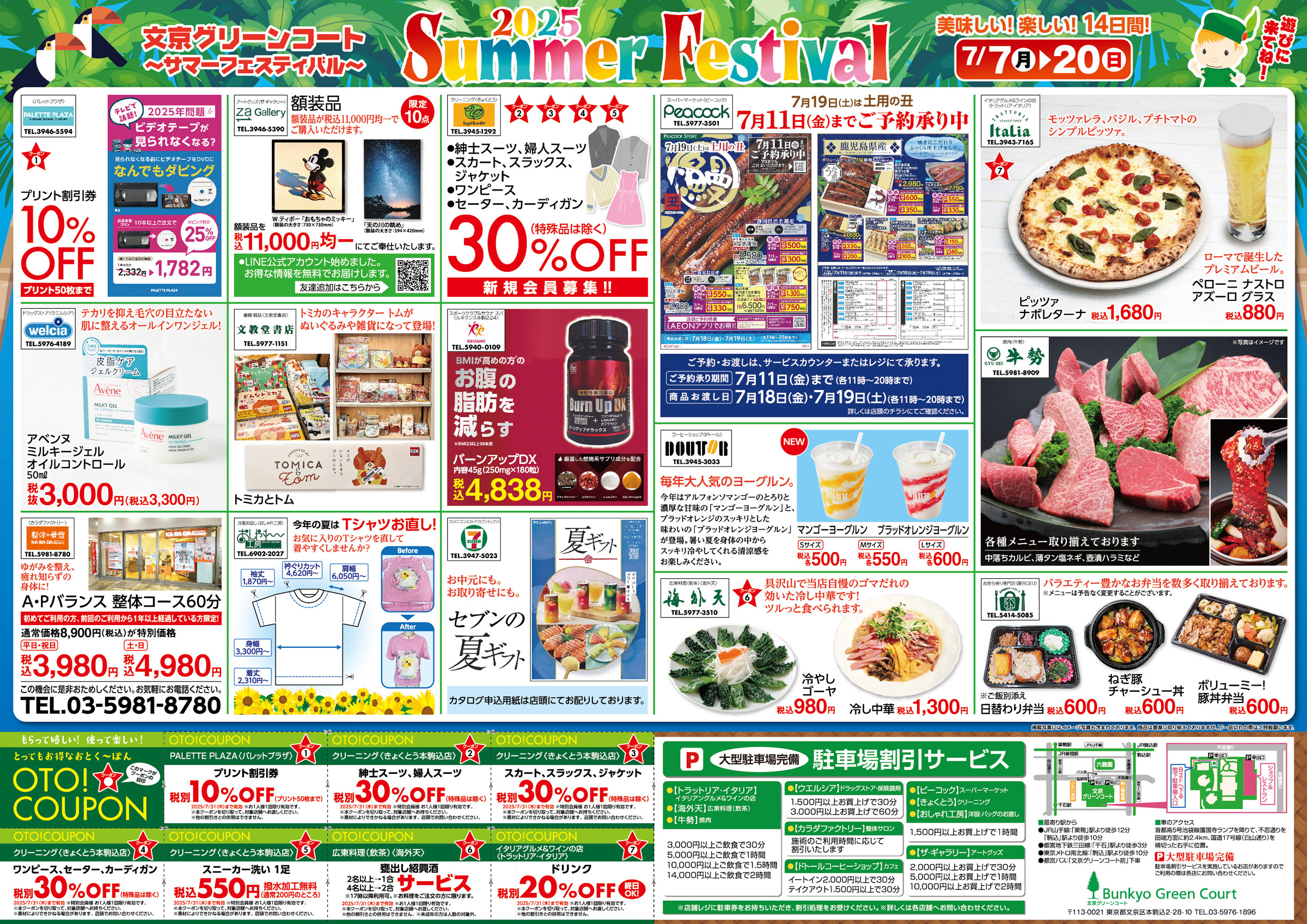 期間中、文京グリーンコート館内の各ショップとルネサンス本駒込24(屋台DELI、2Fカフェテリア、2Fカフェレスカ、2F未来ダイニングは除く)で税込3,000円以上お買い上げのレシートで1回抽選できます。